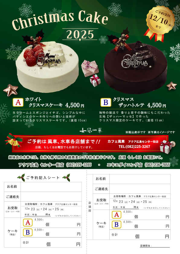 ✔「クリスマスケーキの予約希望」