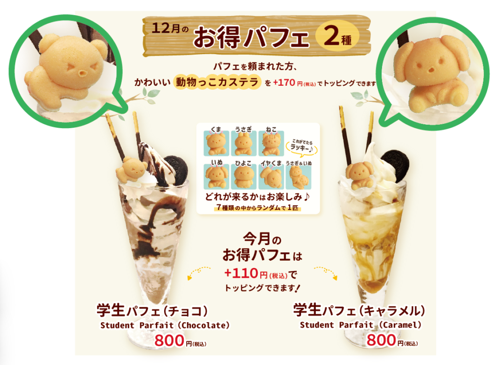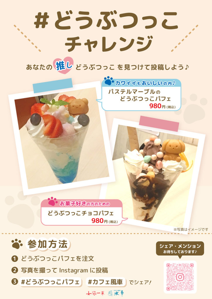 投稿時に#どうぶつっこパフェ #カフェ風車 でシェアするだけ!