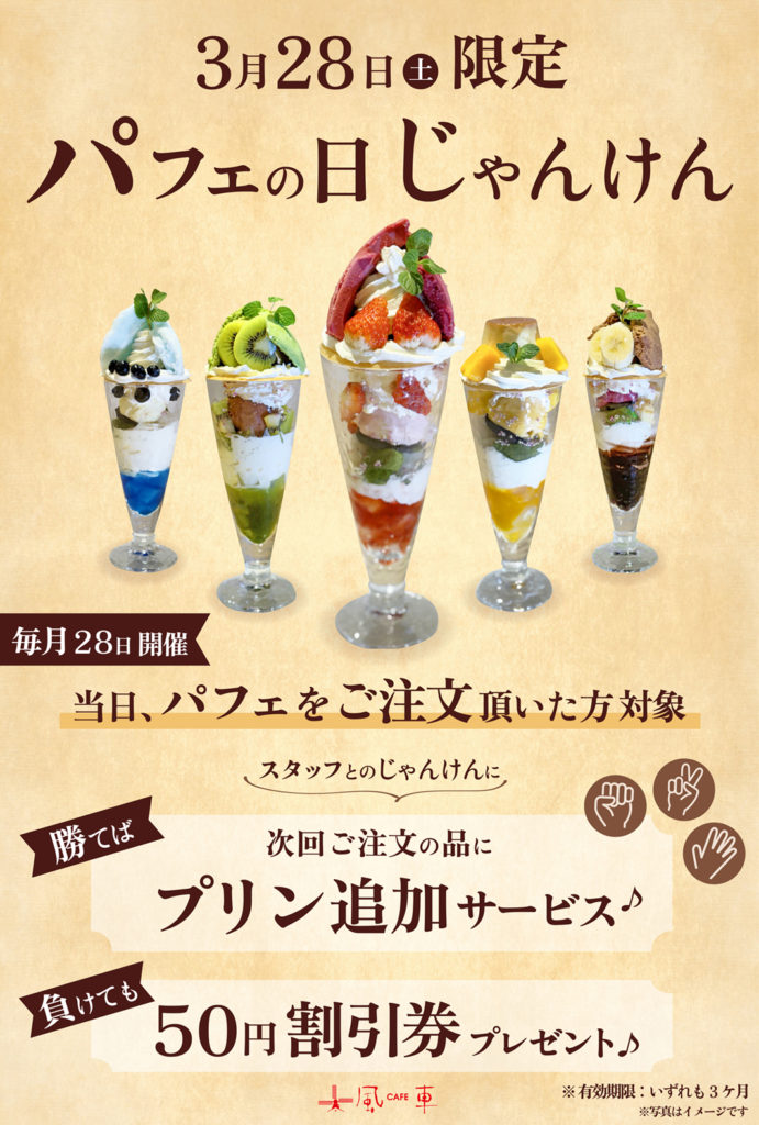3月28日(土)限定イベント ◤パフェの日じゃんけん◢